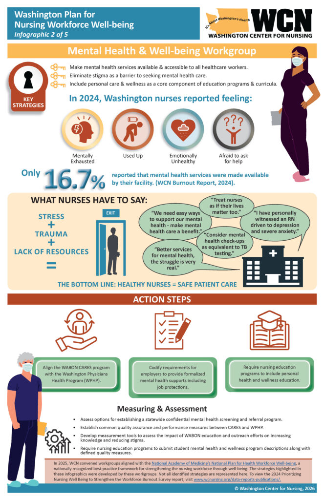 The Washington Plan for Nursing Workforce Well-being infographics share: