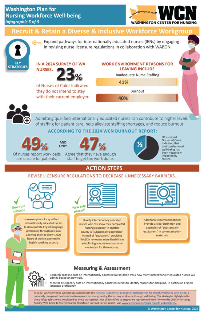 We invite nursing workforce partners across Washington to explore the infographics, share them widely, and engage in this important work.